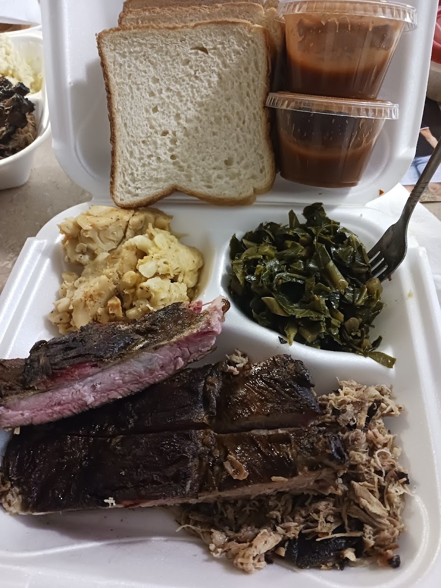 You gotta get ya some! The smoky flavor is awesome, ribs and sausage collard greens my favs, chicken beef and pork also delicious, collard greens, oh yea: I mean really yea:) tangy sauce, great portions for the price!' We keep going to get some!! Very nice people:) see ya next Saturday! Keep on smokin:)